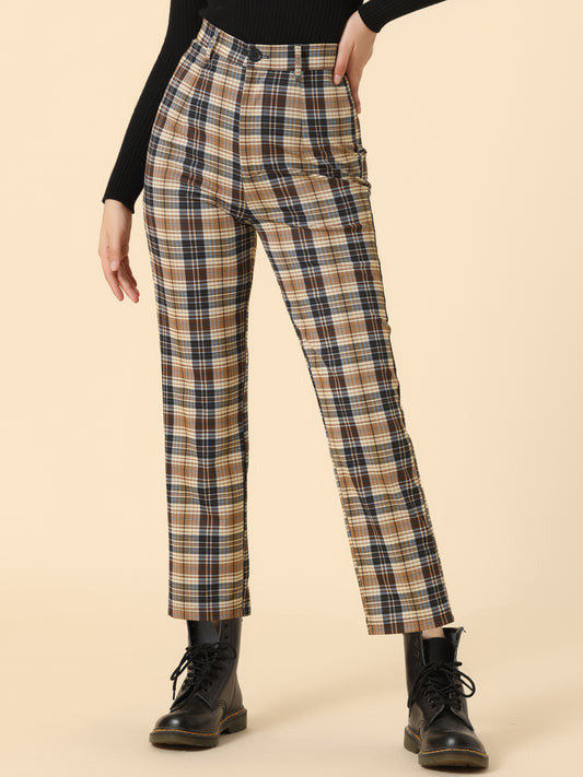 Pantalones de trabajo informales con botones y cuadros escoceses para mujer