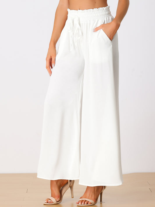 Pantalones Palazzo anchos acampanados con volantes y cintura alta elástica estilo bohemio para mujer