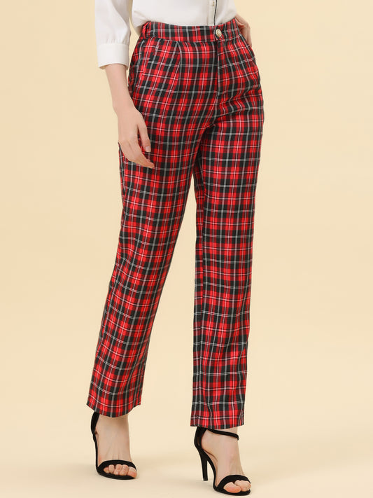 Pantalones a cuadros para mujer, cintura elástica, informales, para trabajo y oficina