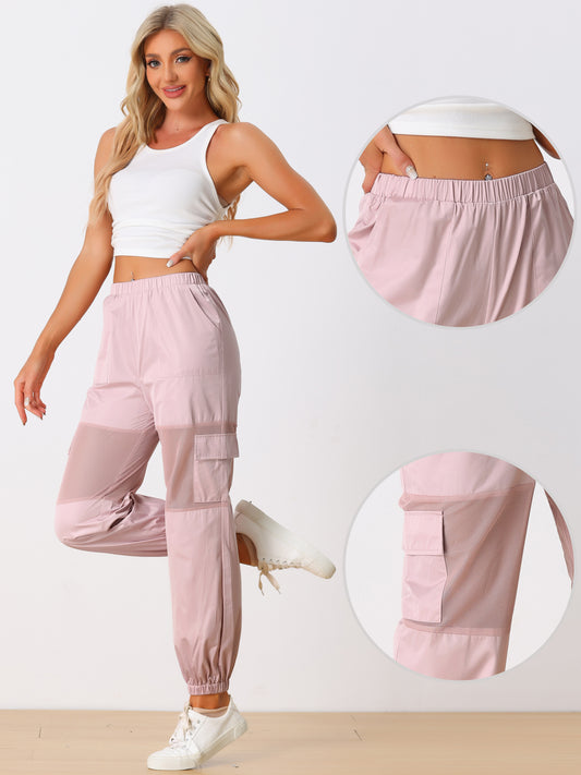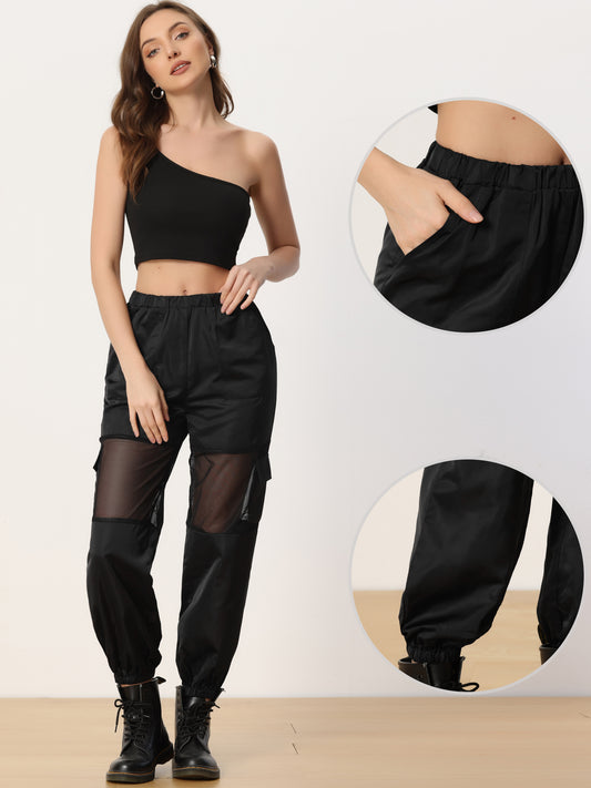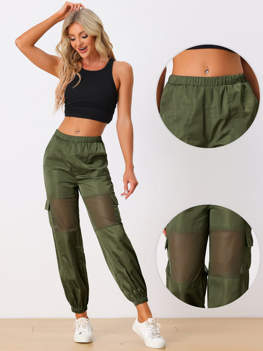 Pantalones cargo deportivos de cintura alta para mujer, con panel de malla elástica, transparentes y holgados