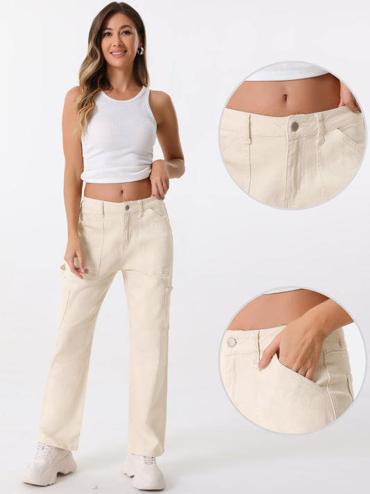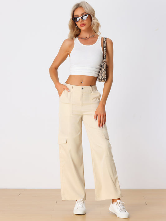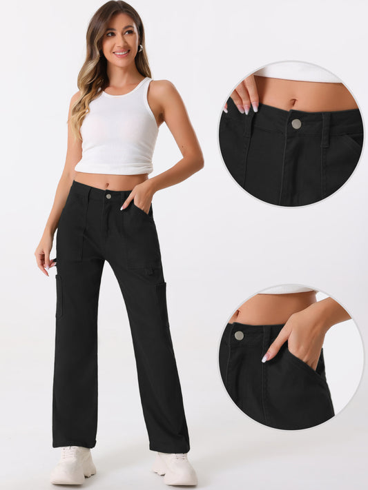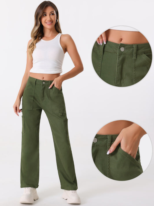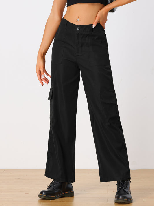 Pantalones cargo para mujer, tiro medio, holgados, pernera ancha, bolsillos, pantalones casuales