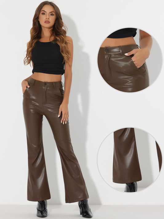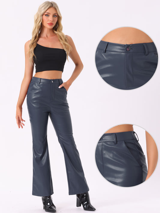 Pantalones casuales de cuero sintético para mujer, cintura alta, acampanados, largos, de PU