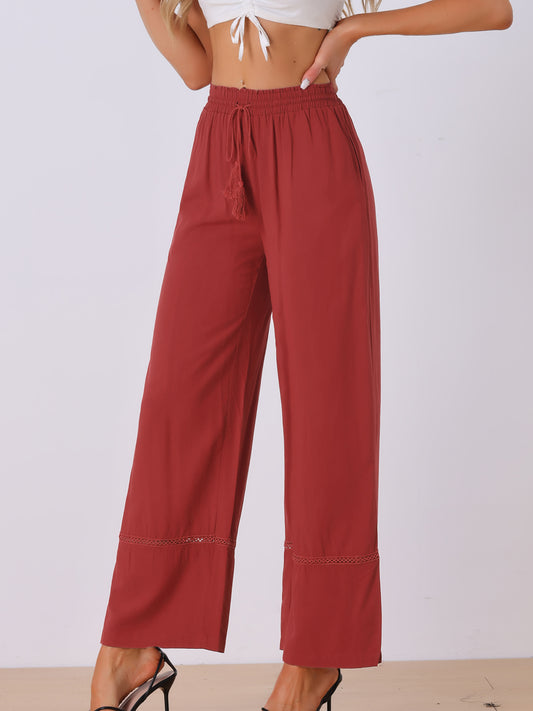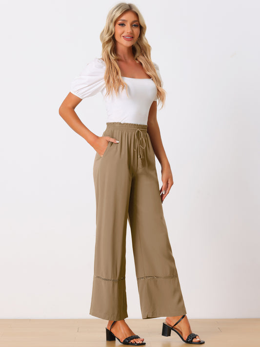 Pantalones casuales de verano para mujer, holgados, de cintura alta, con cordón, pierna ancha, palazzo y bolsillos