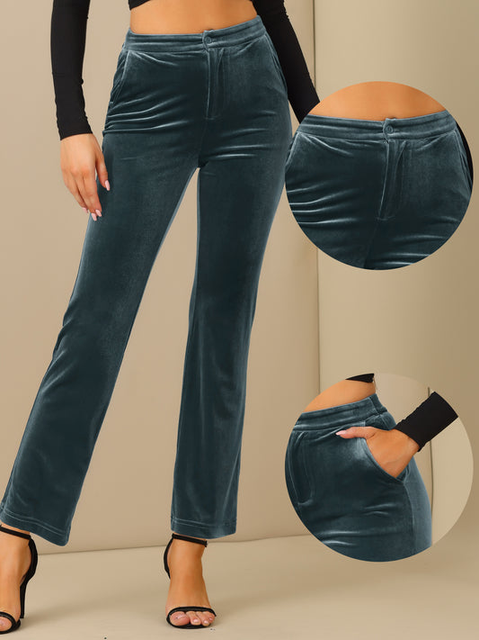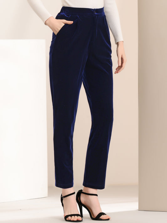 Pantalones de terciopelo elegantes de cintura alta con bolsillos para mujer, pantalones de trabajo hasta el tobillo