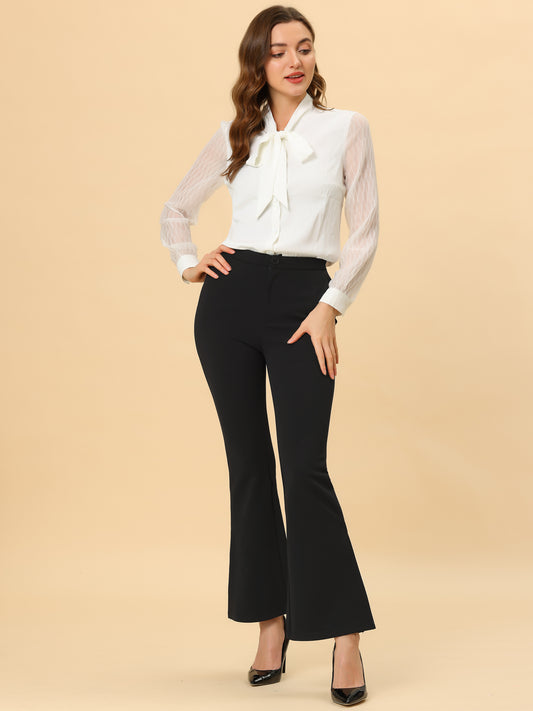 Pantalones elásticos de cintura alta con dobladillo dividido y campana para mujer