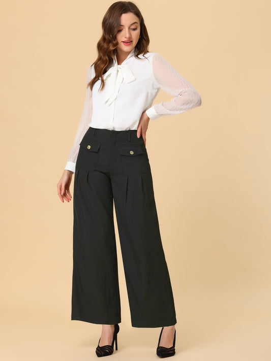 Pantalones Palazzo Largos de Pierna Ancha para Mujer con Bolsillos