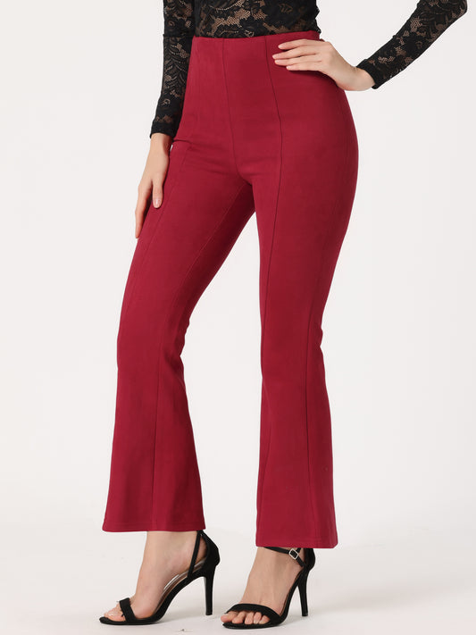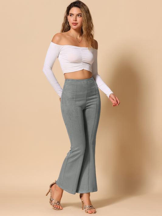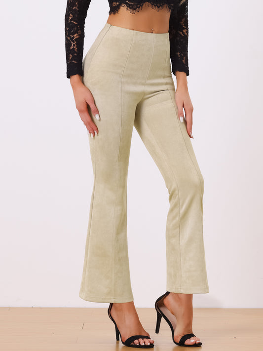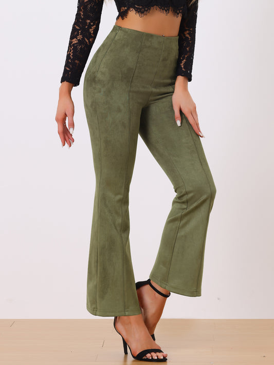 Pantalones de gamuza sintética para mujer, estilo informal de negocios, con piernas anchas y corte acampanado.