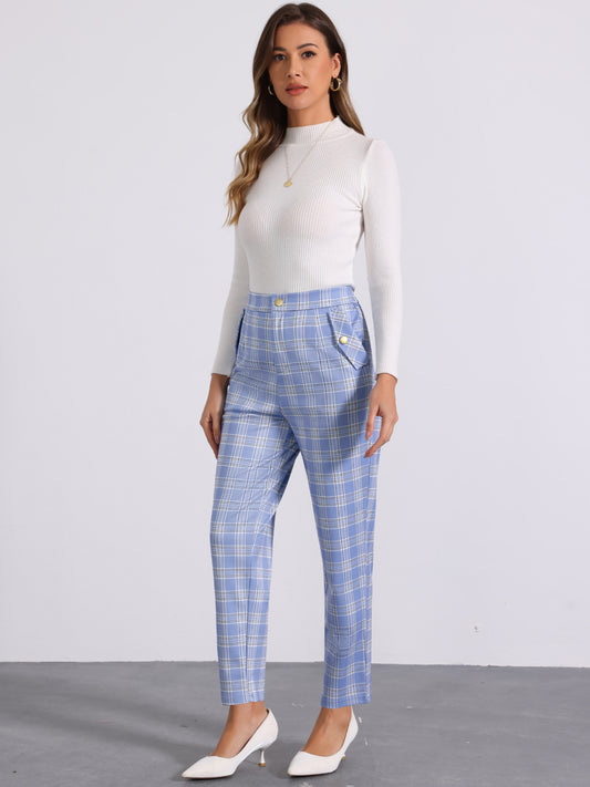 Pantalones de tartán retro para mujer, cintura elástica, rectos y largos