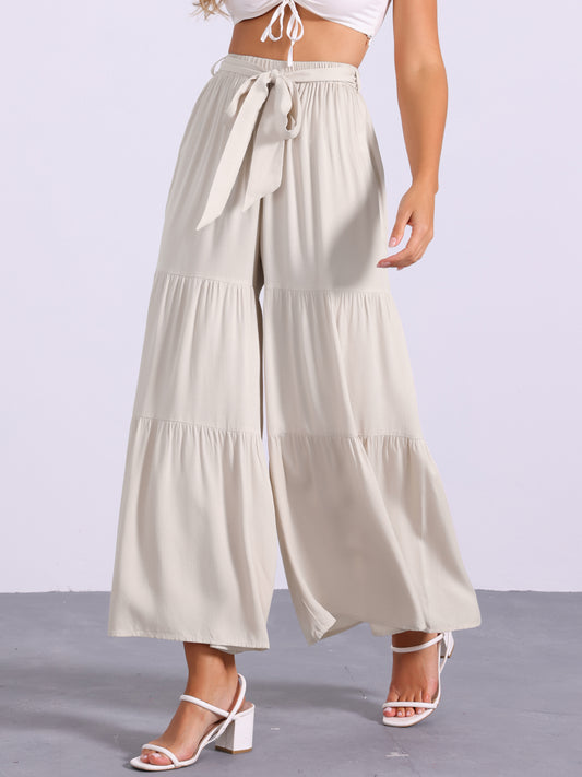 Pantalones Palazzo anchos acampanados con volantes y cintura alta elástica estilo bohemio para mujer