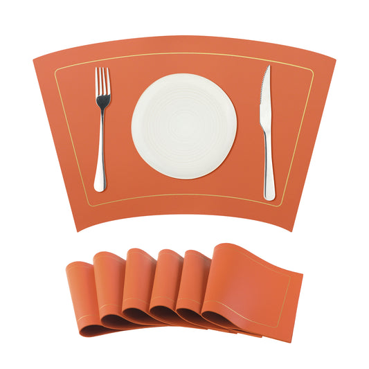 Juego de 6 manteles individuales redondos de piel sintética con forma de cuña, resistentes al calor, 50,8 x 30,5 cm