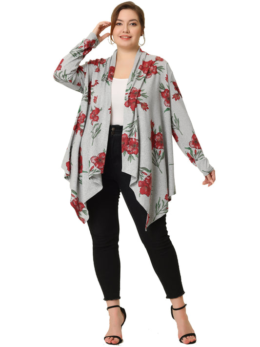 Women's Plus Size Open Front Long Sleeve with Pockets Knit Cardigans