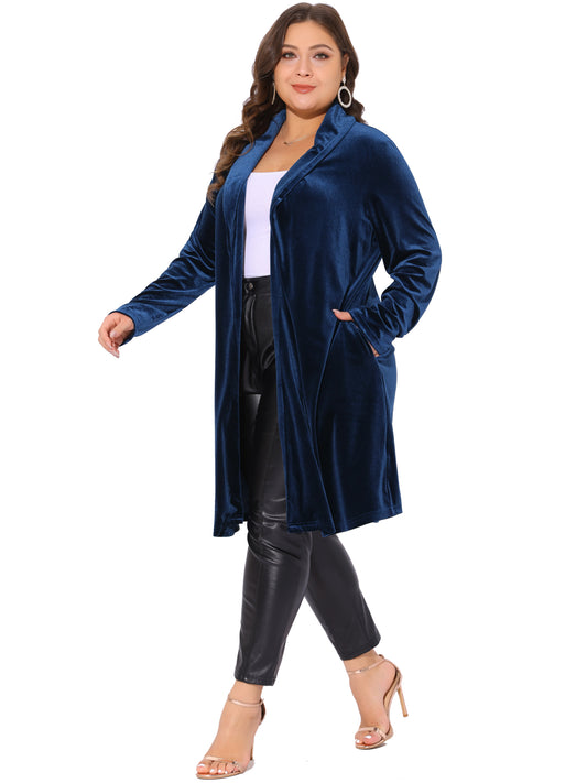 Women Plus Size Velvet Blazer Jackets Open Front Lightweight Long Cardigan