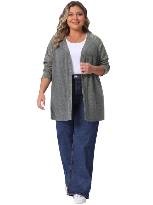 Women Plus Size Knit Cardigans Open Front Long Sleeve Lightweight Midi Sweater Cardigans