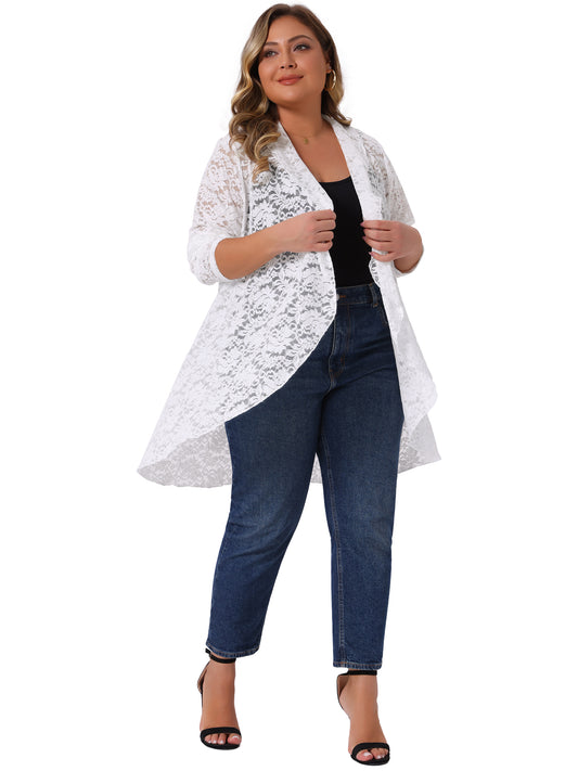 Women Plus Size Cardigans Open Front Long Sleeve Lightweight Sheer Crochet Lace Cover Up