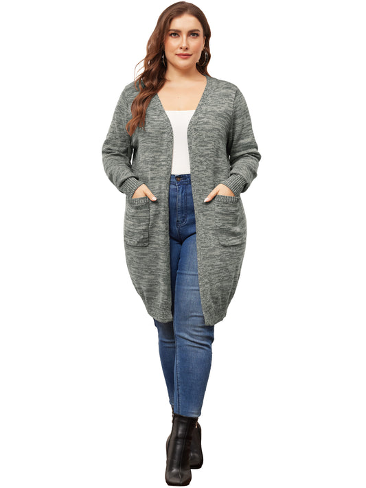 Women Plus Size Sweater Knit Cardigan Open Front Irregular Hem Long Sleeve Cardigan with Pockets