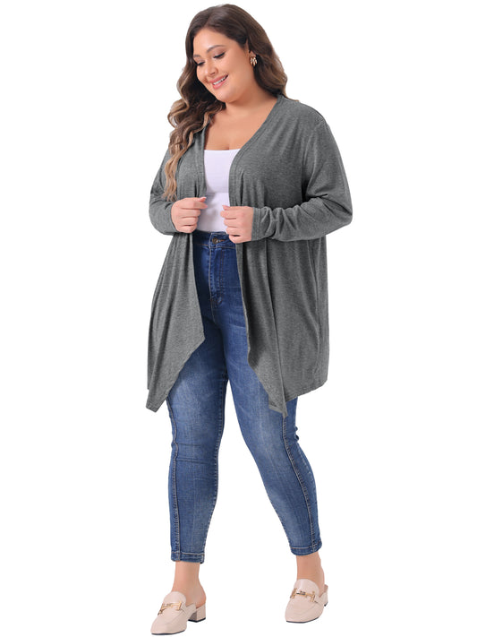 Women Plus Size Cardigan Long Sleeve Open Front Lightweight High Low Hem Draped Cover Ups