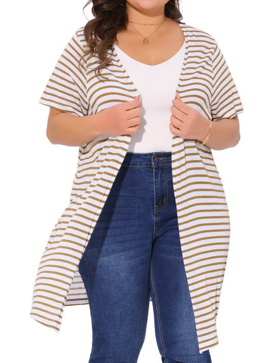 Women Plus Size Cardigan Summer Lightweight Stripe Short Sleeve Open Front Casual Loose Cover Ups