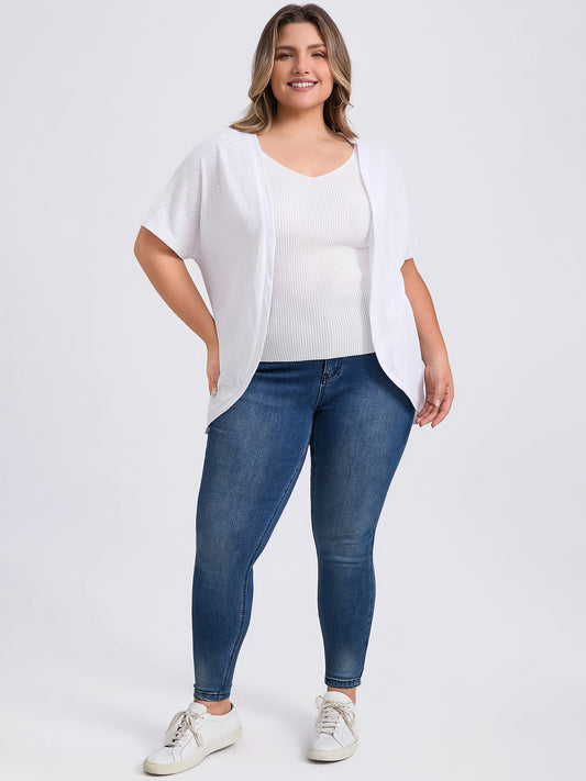 Women Plus Size Open Front Short Sleeves Loose Fit Knit Solid Cardigans