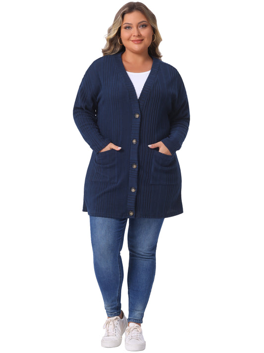 Women Plus Size Cardigans Button V Neck Long Sleeve Lightweight Knit Cardigan with Pockets
