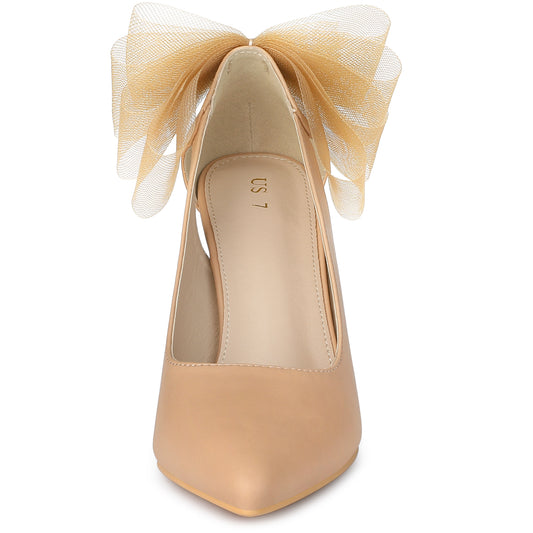 Zapatos de tacón de aguja con punta puntiaguda y lazo de malla para mujer