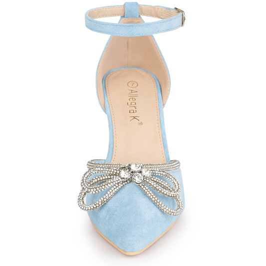 Sandalias de tacón de aguja con lazo y diamantes de imitación para mujer