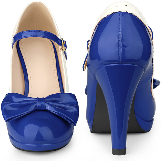 Zapatos retro para mujer con plataforma y lazo, tacones de aguja, zapatos Mary Jane