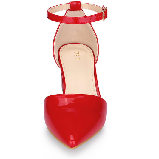 Zapatos de tacón grueso con tiras en el tobillo y punta puntiaguda para mujer