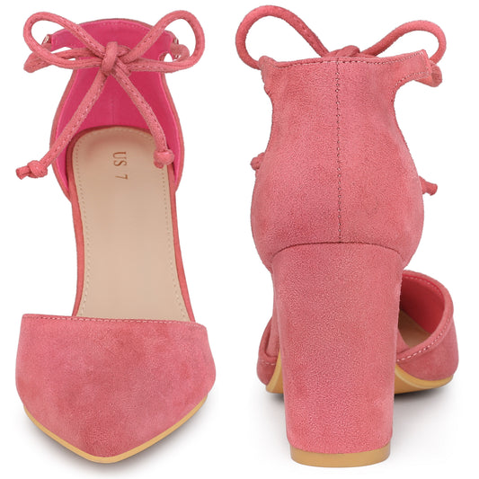 Zapatos de vestir con tacón grueso y punta puntiaguda y lazo en el tobillo para mujer