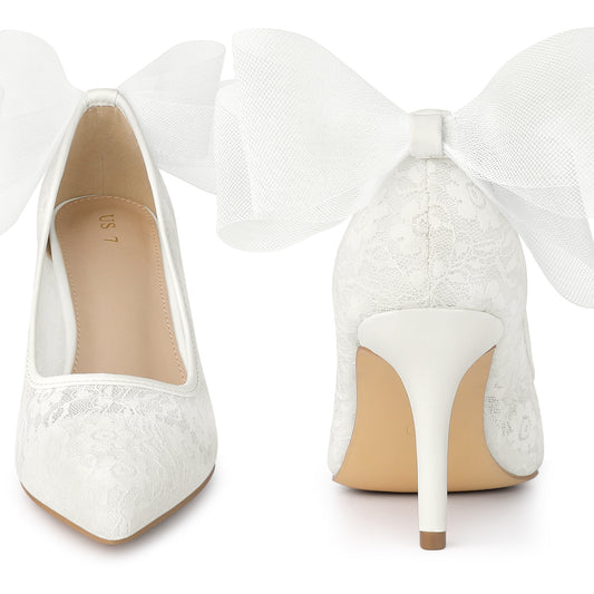 Zapatos de tacón de aguja con encaje y punta puntiaguda para mujer
