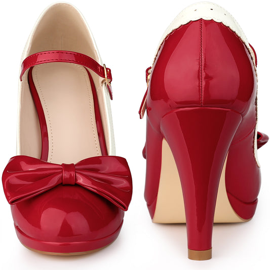 Zapatos retro para mujer con plataforma y lazo, tacones de aguja, zapatos Mary Jane