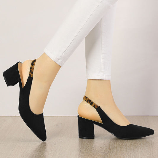 Zapatos de tacón de bloque con punta puntiaguda para mujer