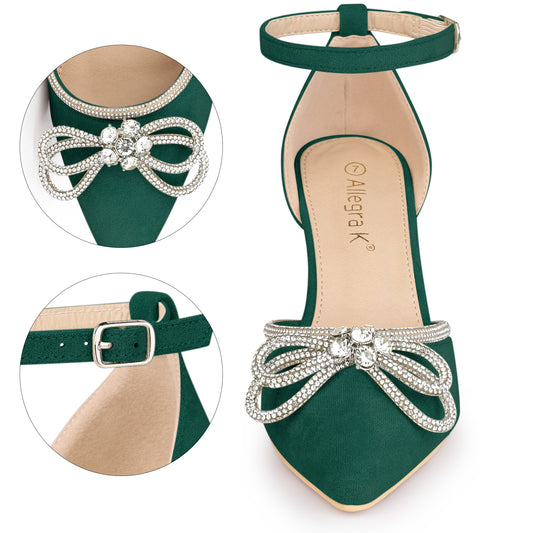 Sandalias de tacón de aguja con lazo y diamantes de imitación para mujer