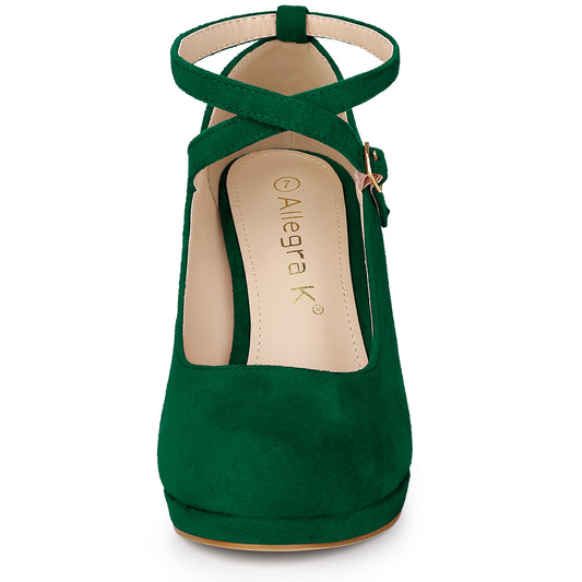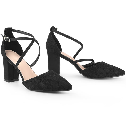 Zapatos de tacón de bloque con puntera cerrada y tiras cruzadas para mujer
