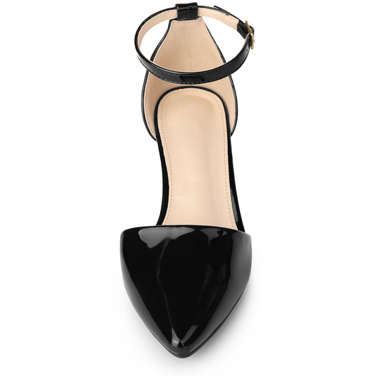Zapatos de tacón de aguja con tiras en el tobillo y punta redonda para mujer