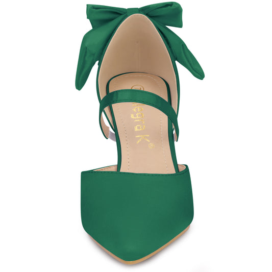 Zapatos de tacón de aguja de satén con lazo y punta puntiaguda para mujer
