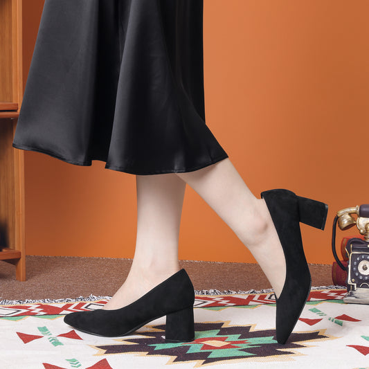 Zapatos de tacón bajo con punta puntiaguda y tacón grueso para mujer