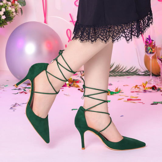 Sandalias de tacón de aguja con cordones y punta puntiaguda para mujer