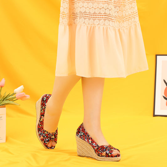 Sandalias de cuña con plataforma y punta abierta con diseño floral para mujer