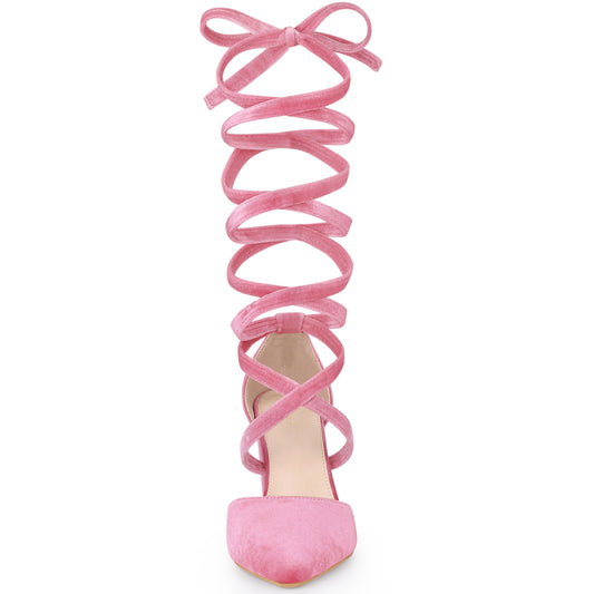 Zapatos de tacón grueso con cordones y punta puntiaguda de terciopelo para mujer