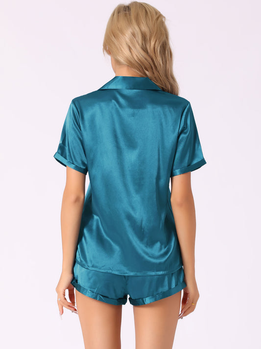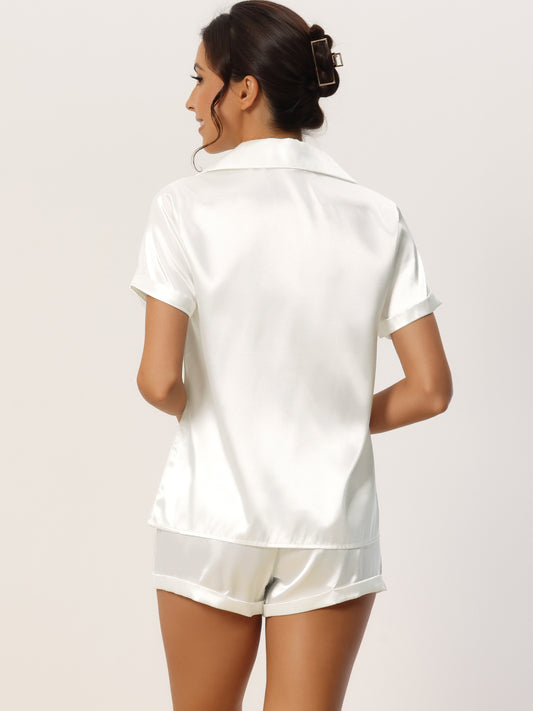Pijama de satén para mujer, camiseta con botones y pantalones cortos, conjunto de descanso sedoso