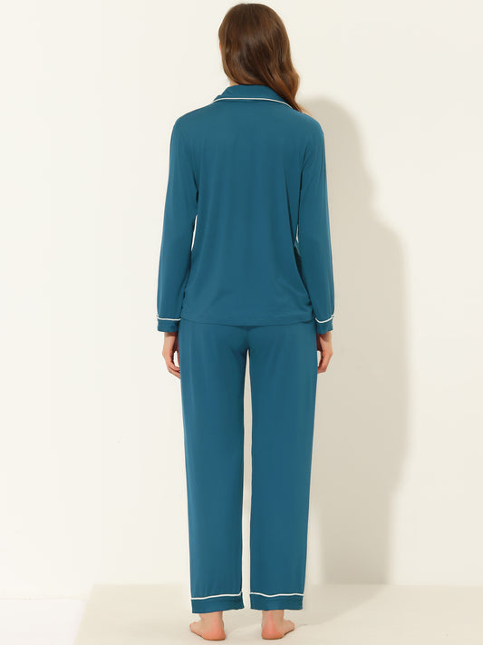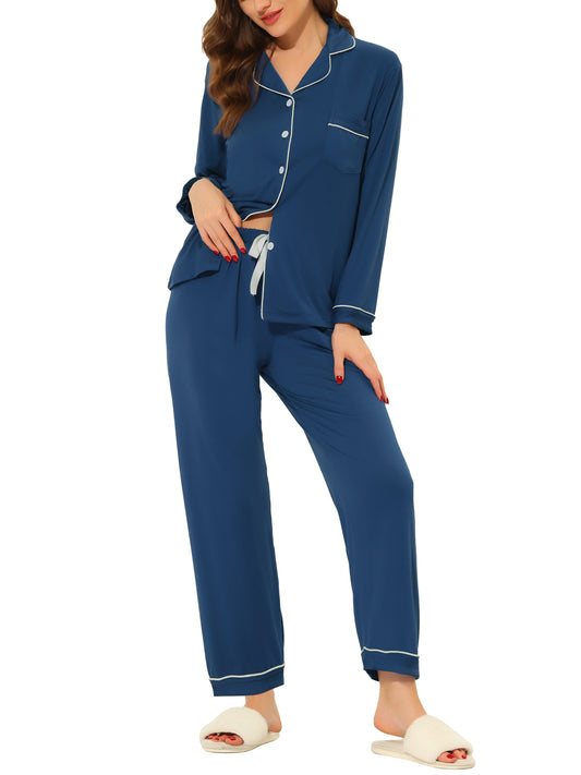 Pijama de mujer, camisón modal con botones, manga larga y pantalón, conjunto de ropa de estar por casa