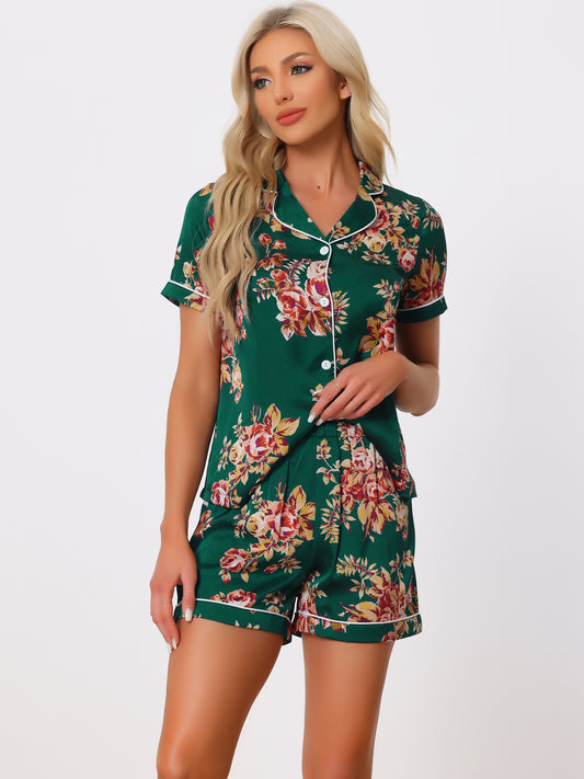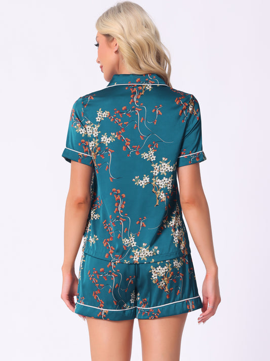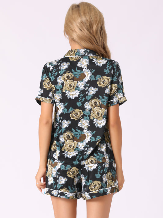 Conjunto de pijama de verano para mujer, con camisa hawaiana abotonada y pantalones cortos