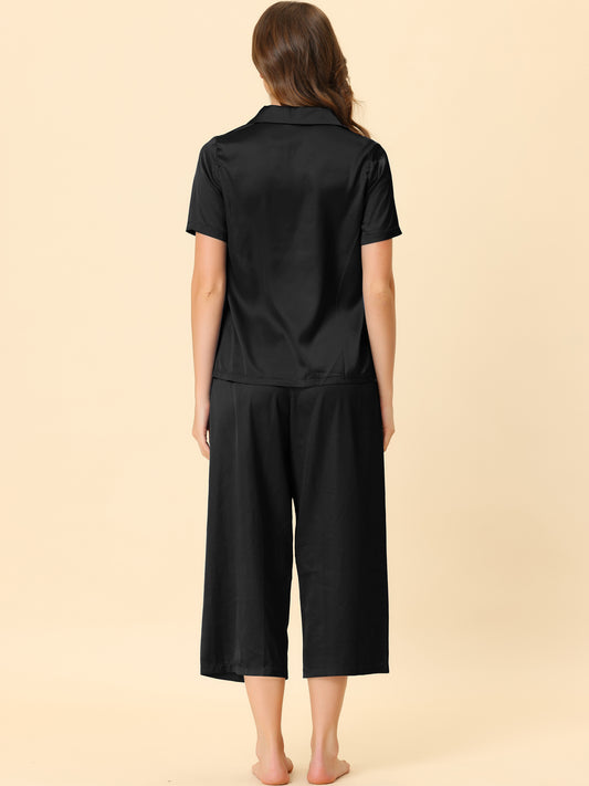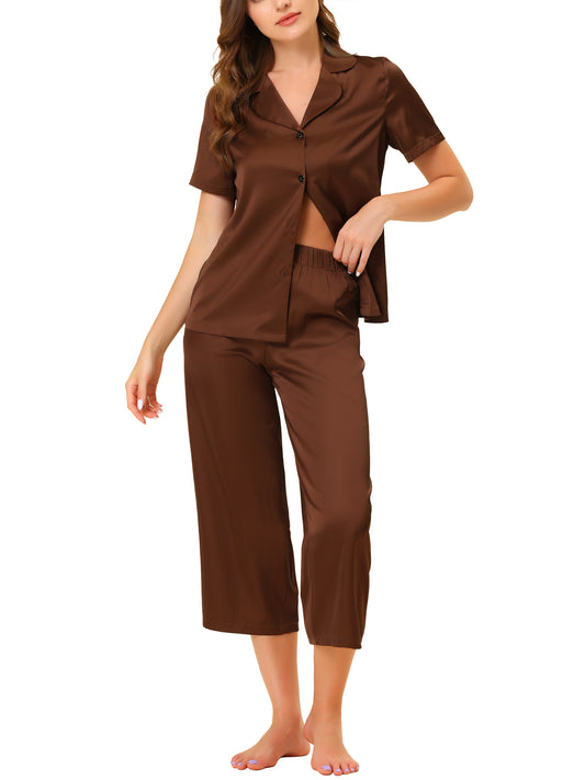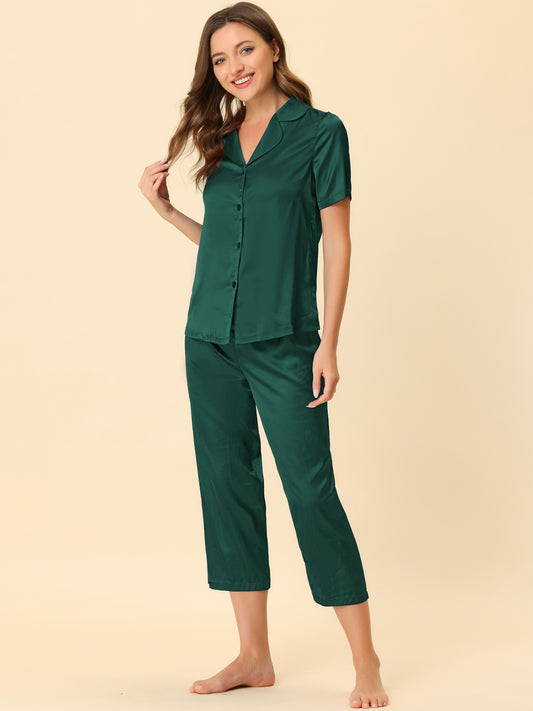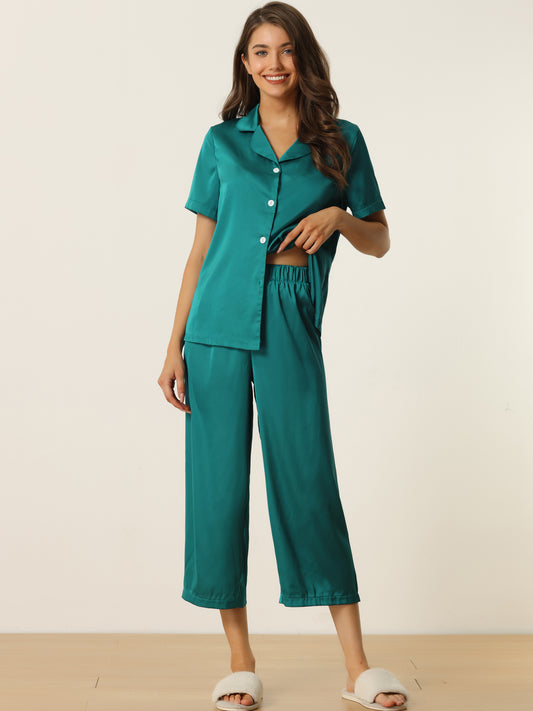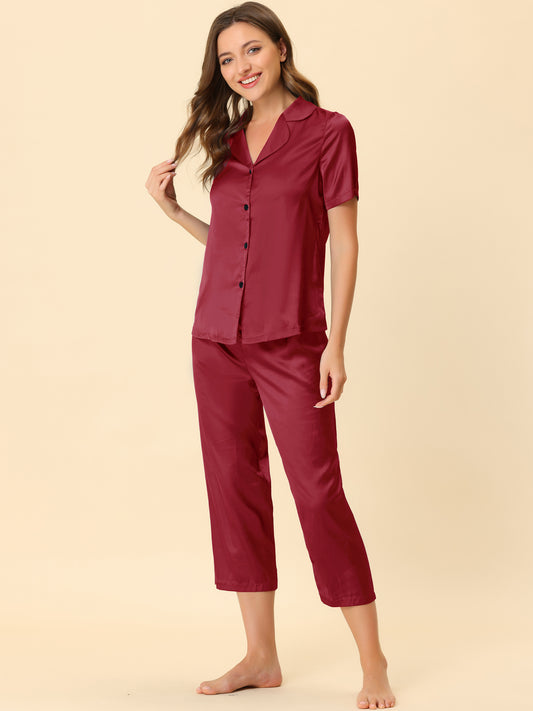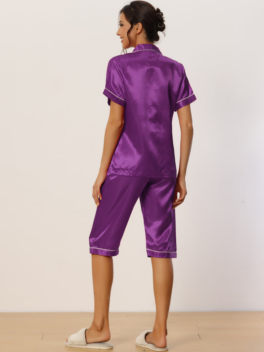 Pijama de satén para mujer, conjunto de pijama de seda con botones y pantalones capri