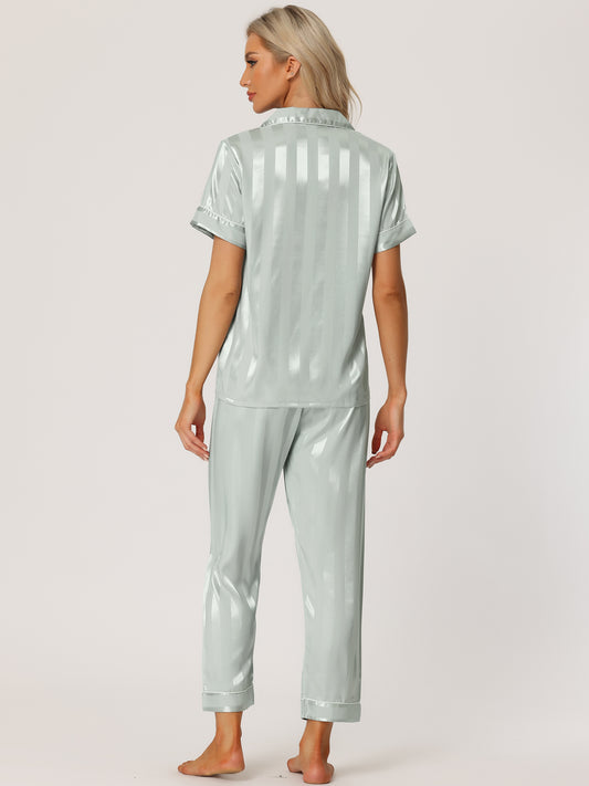 Conjunto de pijama de satén con botones y manga corta a rayas para mujer, pantalón largo y sedoso