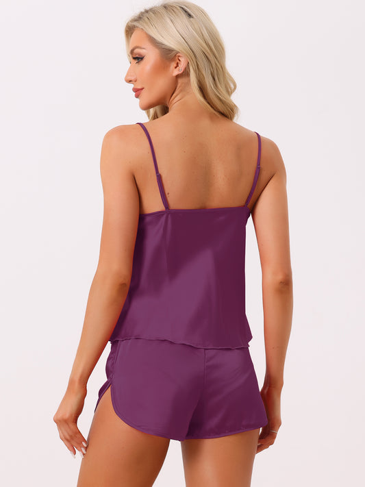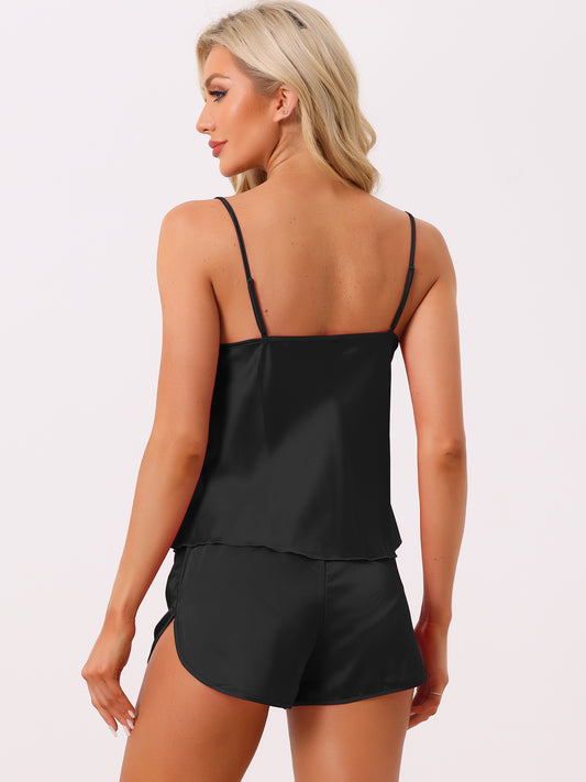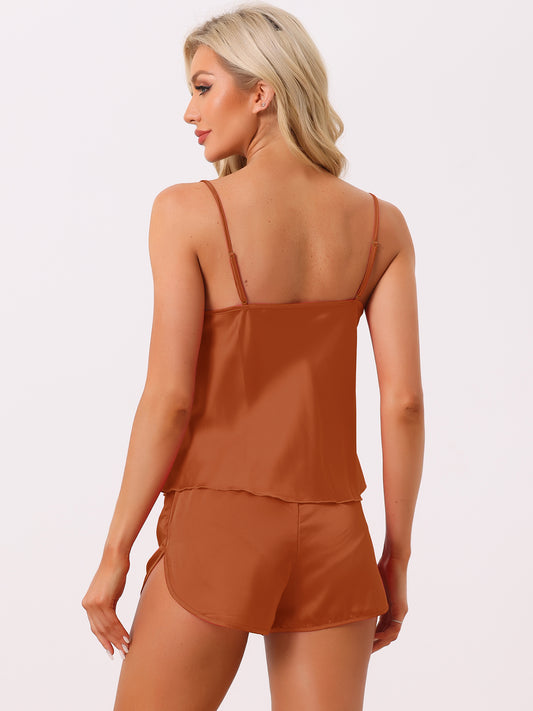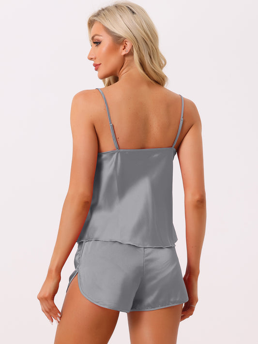 Conjuntos de pijama de satén para mujer, conjuntos de camisola y pantalones cortos, ropa de dormir sexy, conjunto de pijama sedoso con pantalones cortos