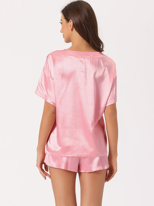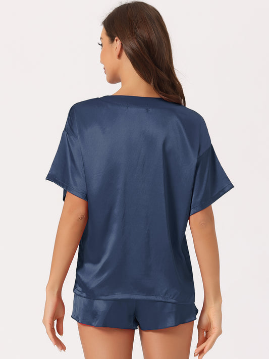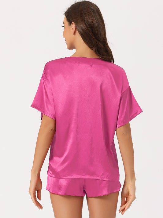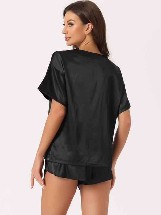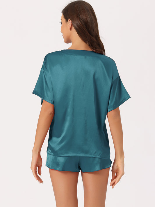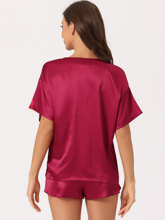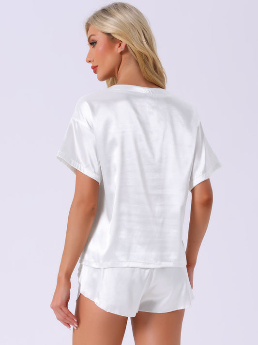 Pijama de satén para mujer, conjunto de camiseta de manga corta con pantalones cortos para primavera y verano