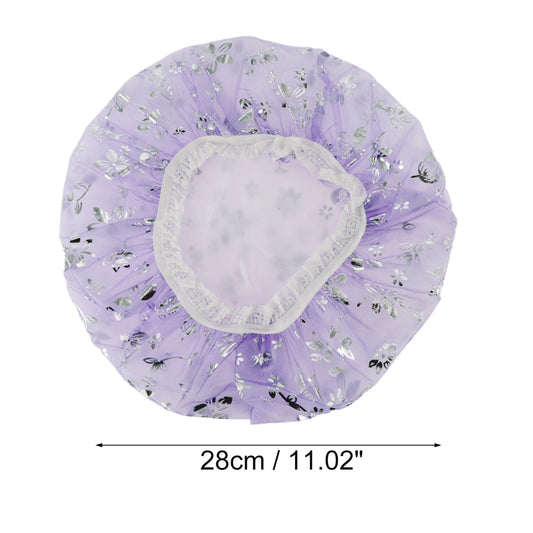 1 Pc Women Double Layer Mesh Shower Cap for Bathroom Vacation Travel Light Purple