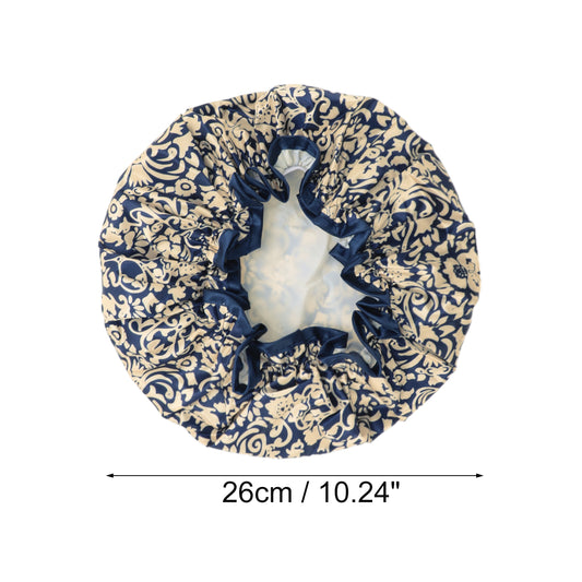 1 Pc Women Double Layer Flowers Shower Cap for Bathroom Vacation Travel Navy Blue