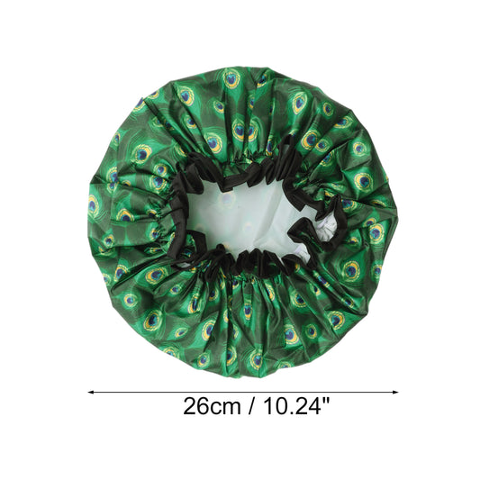 1 Pc Women Double Layer Peacock Pattern Shower Cap for Bathroom Vacation Green