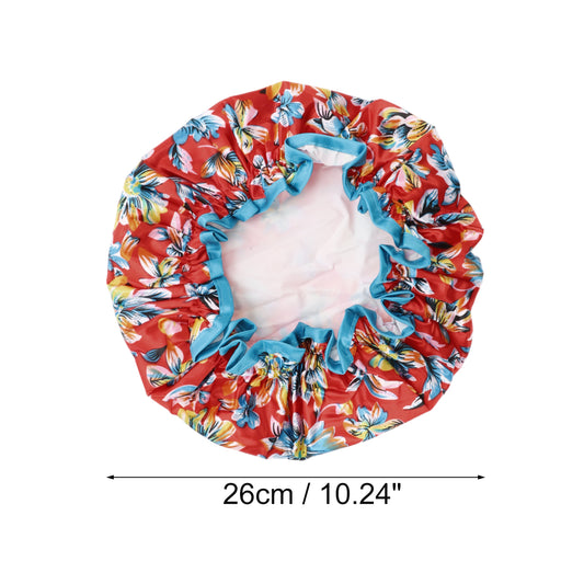1 Pc Women Double Layer Flowers Shower Cap for Bathroom Vacation Travel Red